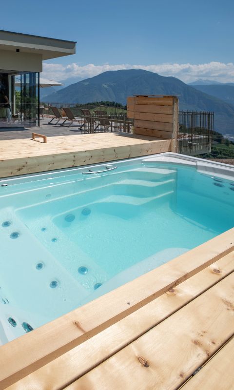Beide unserer Suiten verfügen über einen beheizten Jacuzzi oder Spa-Pool mit Gegenstromanlage. Die Sauna in jeder Suite rundet das Wellness ab.